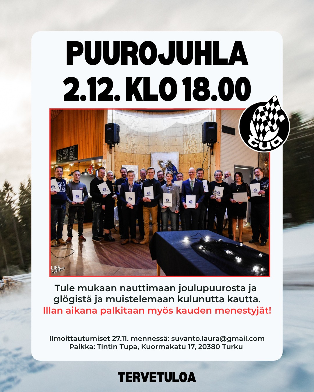 Vuoden 2025 tapahtumarikas kausi huipentuu kerhoiltaan ja joulupuuroon tiistaina 2.12. klo 18:00 alkaen Tintin Tuvalla! Tule mukaan nauttimaan joulupuurosta ja glögistä, muistelemaan kulunutta kautta sekä suunnittelemaan tulevaa vuotta 2026. Illan aikana palkitaan myös kauden menestyjät.